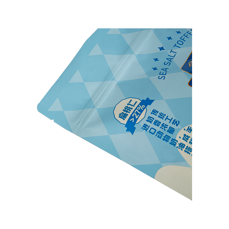 Pystypussikaramelli käyttää pystyssä olevaa pakkausta, joka on muodikas ja tilaa säästävä, ja se on helppo näyttää ja ottaa mukaan. Laukun runko on enimmäkseen valmistettu väripainetusta komposiittikalvosta, jossa on kirkkaat värit ja upeat kuviot, jotka herättävät kuluttajien huomion. Itsekantava pohjarakenne on vakaa ja voidaan asettaa pystyasentoon; yläosa on helppo repiä tai sulkea vetoketjulla, mikä on kätevä avata ja sulkea sekä säilyttää. Se sopii välipaloihin, kuten pehmeisiin karkkiin, suklaapapuihin ja hyytelöön, yhdistäen käytännöllisyyden ja kauneuden. Pakkauksessa on selkeästi merkitty ainesosat, säilyvyys ja muut tiedot, se on turvallinen ja hygieeninen, sopii supermarkettien hyllyille ja kotisäilytykseen ja parantaa kuluttajakokemusta.